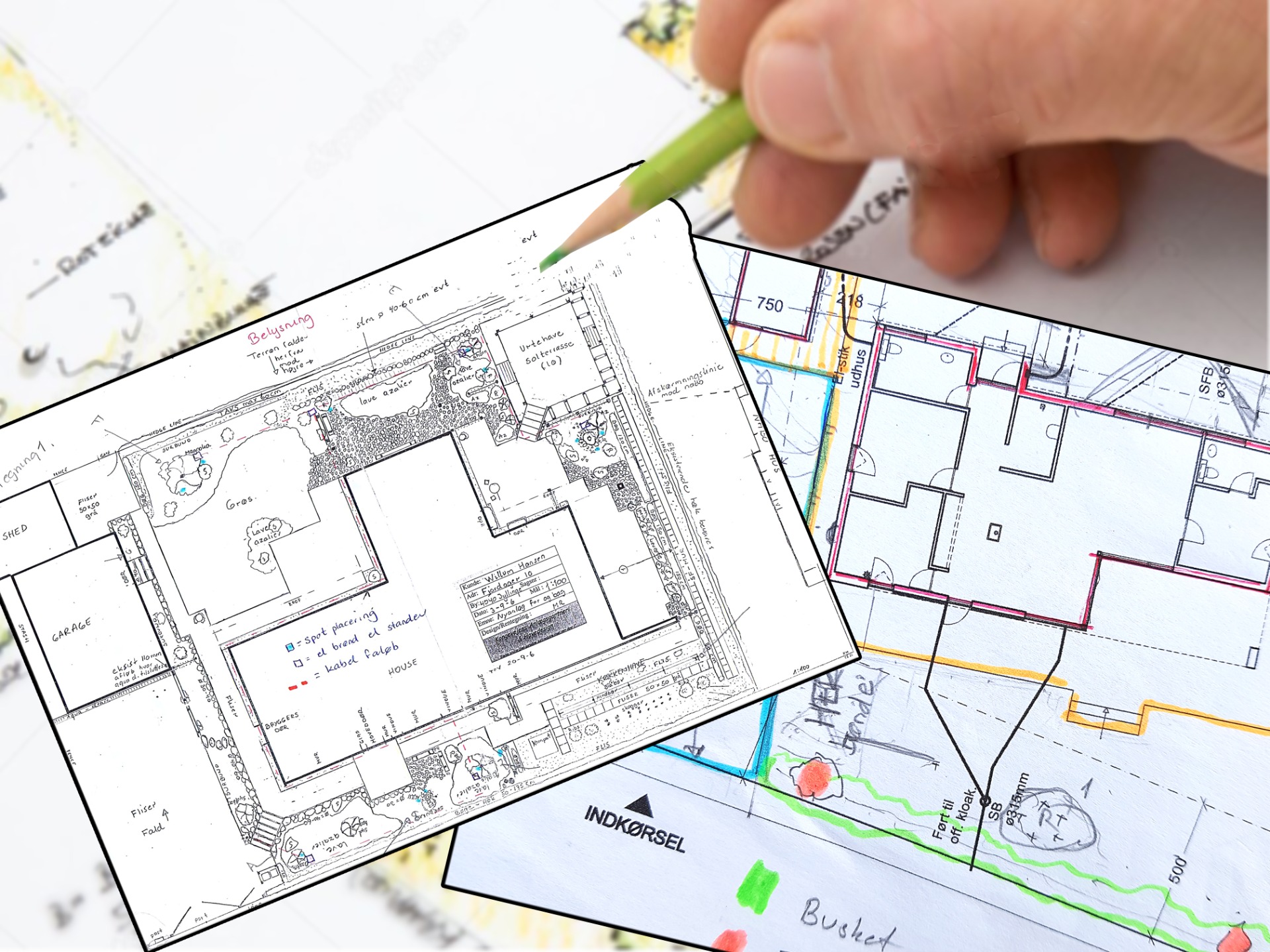 Det mest og bedste arbejde starter med en god tegning. Desto mere der skal ændres og desto større opgave vi står overfor desto vigtigere bliver en god plan over haven.